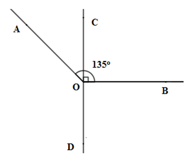 Cho \(\widehat {AOB} = {135^0}\), điểm C nằm trong \(\widehat {AOB}\) biết \(\widehat {BOC} = {90^0}\) . Gọi OD là tia đối của tia OC.
