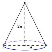 Thể tích khối nón đã cho là: \(V = \dfrac{1}{3}\pi {R^2}h = \dfrac{1}{3}\pi .2a.{a^2} = \dfrac{{2\pi {a^3}}}{3}.\)