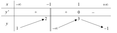 Từ BBT ta thấy hàm số đồng biến trên \(\left( { - \infty ; - 1} \right);\left( { - 1;1} \right)\) nên B sai vì trên khoảng \(\left( { - \infty ;1} \right)\) thì hàm số gián đoạn tại \(x = - 1.\)