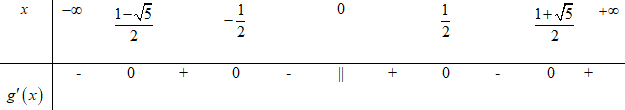 Với \(x < 0\), \(g'\left( x \right) = 0 \Leftrightarrow \left[ \begin{array}{l}x = - \dfrac{1}{2}\\{x^2} - x = - 1\\{x^2} - x = 1\end{array} \right. \Leftrightarrow \left[ \begin{array}{l}x = - \dfrac{1}{2}\\x = \dfrac{{1 + \sqrt 5 }}{2}\left( L \right)\\x = \dfrac{{1 - \sqrt 5 }}{2}\end{array} \right.\)