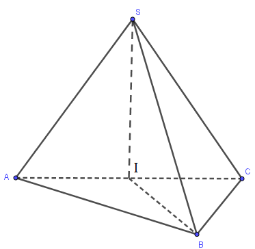 Hình chóp \(S.ABC\) có \(SA=SB=SC\) nên chân đường vuông góc kẻ từ S tới đáy là tâm đường tròn ngoại tiếp tam giác ABC.