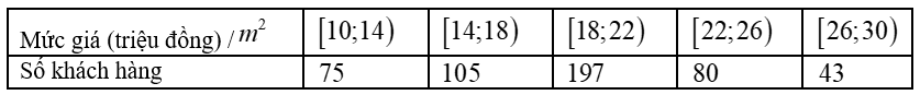 Một công ty bất động sản thực hiện cuộc khảo sát khách hàng xem họ có nhu cầu mua ở mức giá nào cho một căn nhà, để tiến hành dự án xây dựng khu đô thị mới sắp tới. Kết quả khảo sát 500 khách hàng được ghi lại ở bảng sau: