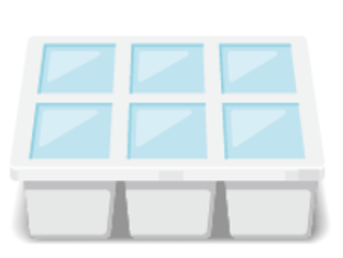 Cô Hà có 10 khay làm đá giống nhau (như hình dưới), mỗi khay sẽ tạo được 6 viên đá. Các viên đá có dạng khối chóp cụt tứ giác đều có cạnh của đáy lớn bằng 3 cm, cạnh của đáy nhỏ bằng 1,5 cm và cao 3 cm.