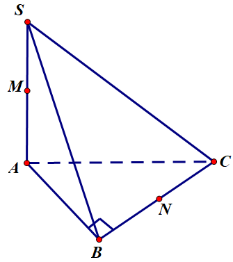 Cho hình chóp S.ABCD có đáy ABC là tam giác vuông tại B, cạnh SA vuông góc với đáy. Gọi M, N lần lượt là trung điểm của SA, BC (tham khảo hình vẽ). Xác định khoảng cách giữa hai đường thẳng SA và BC.