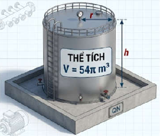 Một đại lý xăng dầu tại Quảng Ngãi cần làm một bồn chứa dầu hình trụ bằng tôn có thể tích $V = 54\pi$ $(m^3)$. Gọi r, h lần lượt là bán kính đáy và chiều cao của cái bồn dầu.
