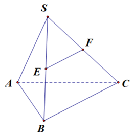 Cho hình chóp S.ABC có đáy ABC là tam giác đều. Gọi các điểm E, F lần lượt là trung điểm của SB và SC. Khi đó góc giữa EF và AB bằng
