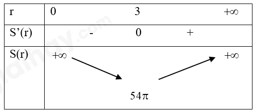 b) Để diện tích toàn phần nhỏ nhất thì bán kính r = 3 (m).